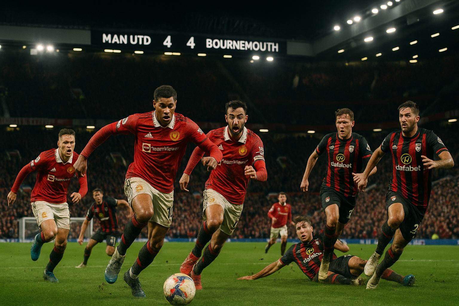 Manchester United and Bournemouth played out a dramatic 4-4 draw in the Premier League at Old Trafford, with both teams leading multiple times in an entertaining match. The Red Devils dominated possession and chances but failed to secure victory, extending their winless home run to three games. Bournemouth's resilience earned them a point despite a seven-game winless streak.