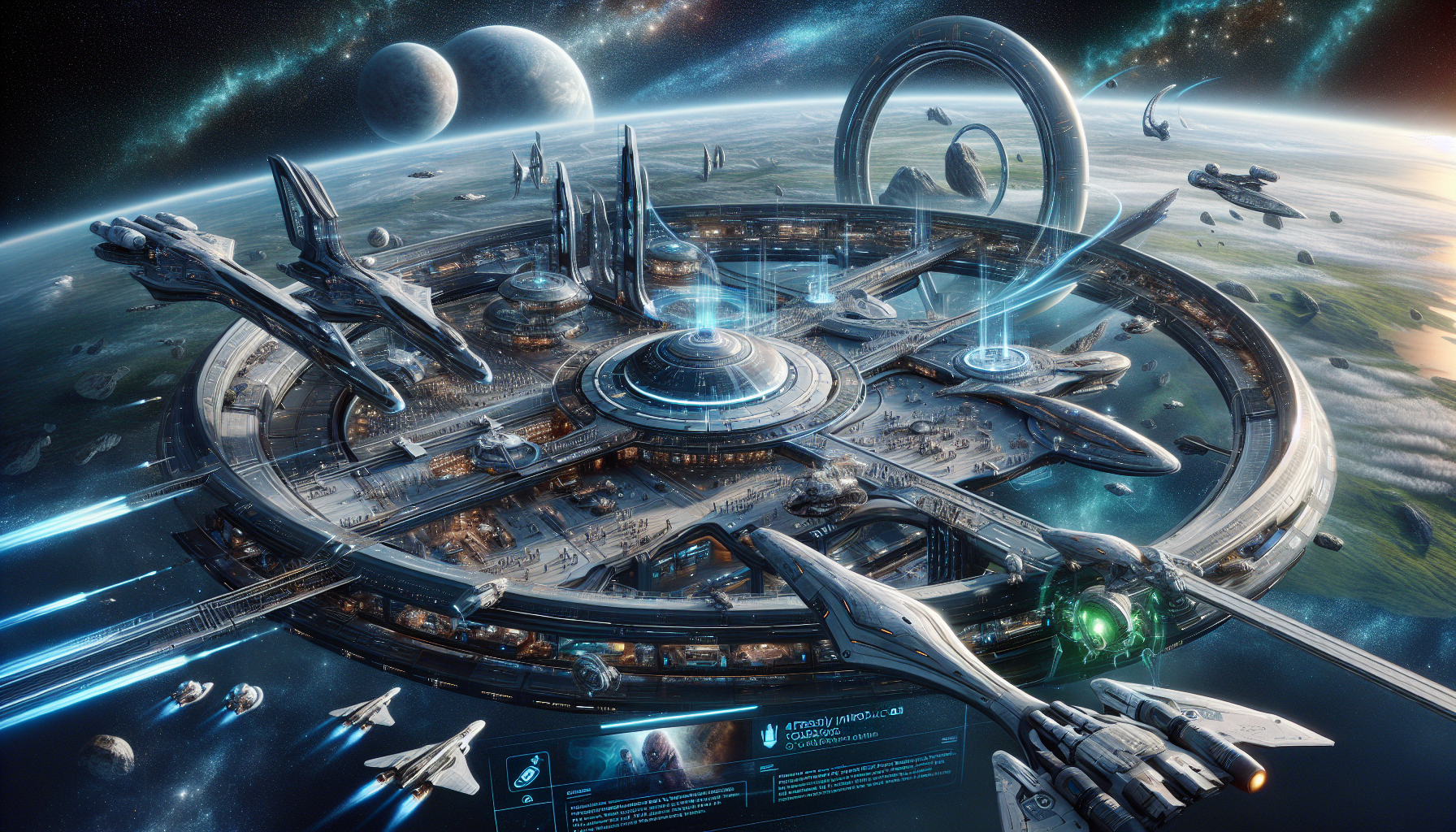 Futuristic Mass Effect universe scene with promotional holographic display announcing new TV series details, for news article on BioWare update.