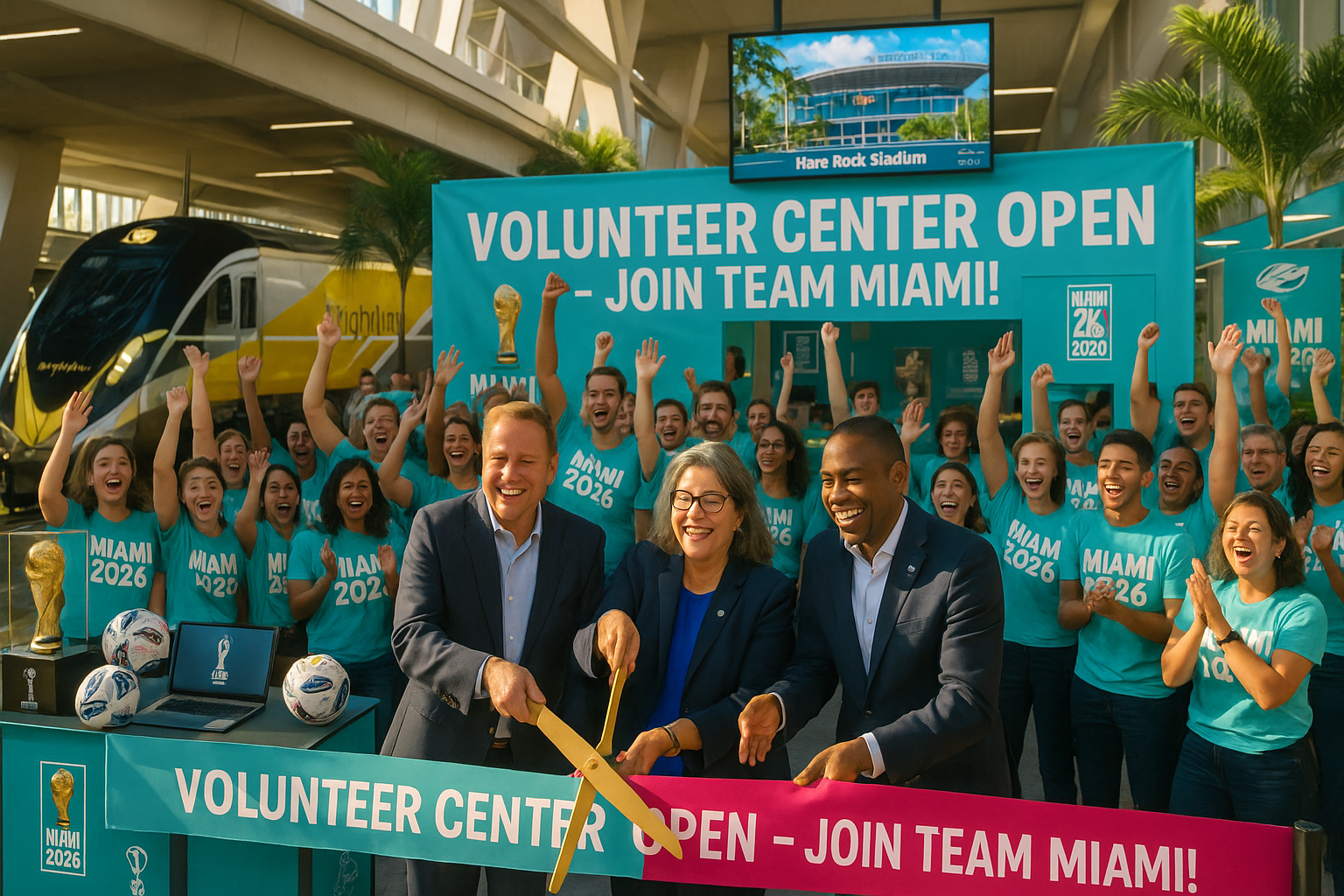 On Monday, December 8, 2025, the FIFA Miami Host Committee, in partnership with Brightline, officially opened the World Cup 2026 Volunteer Center at the Brightline MiamiCentral station in downtown Miami. This hub will function as the operational base for more than 6,000 Miami-based volunteers, part of a total of approximately 65,000 volunteers across 16 host cities in the United States, Canada, and Mexico—the largest volunteer initiative in FIFA World Cup history.