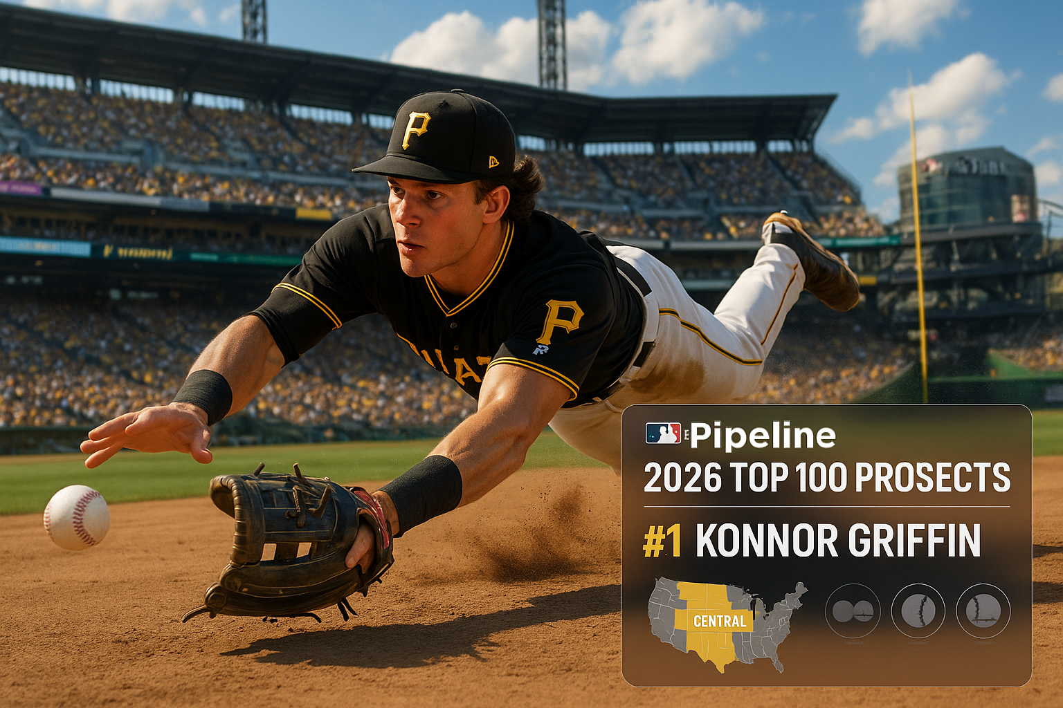 MLB Pipeline has unveiled its annual Top 100 Prospects list for 2026, highlighting a deep pool of talent across Major League Baseball. Pittsburgh Pirates shortstop Konnor Griffin tops the rankings as the No. 1 overall prospect, praised for his elite tools and performance. The Central divisions lead in quantity and quality of top prospects.