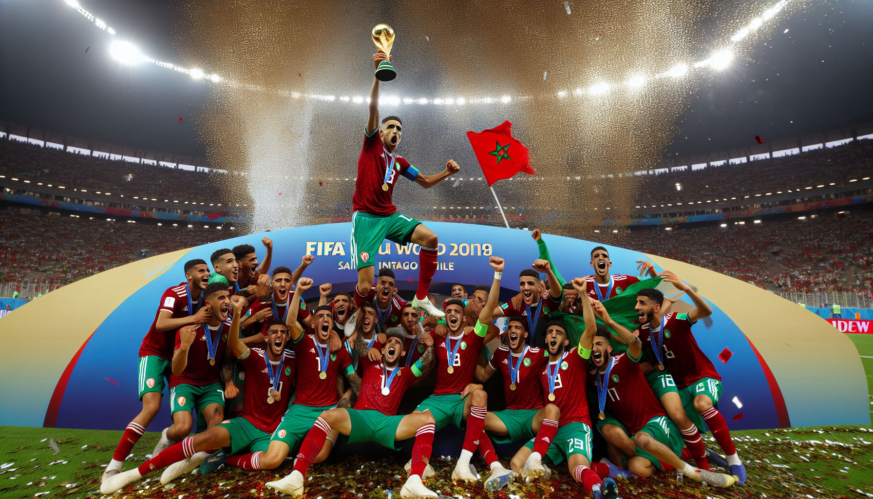 Moroccan U-20 team celebrates their first FIFA World Cup title with a 2-0 win over Argentina in Santiago, Chile, as Yassir Zabiri lifts the trophy.