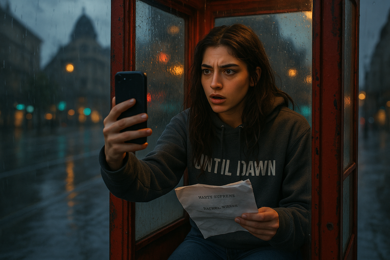 Odessa A’zion in a Budapest phone booth, self-taping her audition for 'Marty Supreme' opposite Timothée Chalamet.