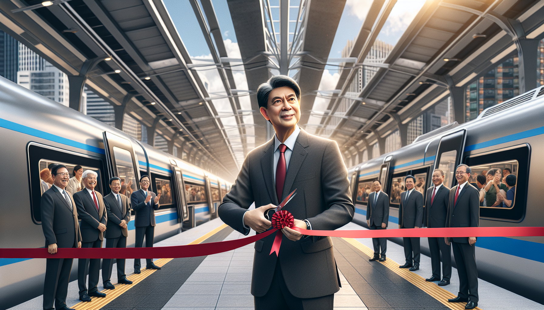 President Prabowo Subianto cuts a ribbon at the inauguration of the new Tanah Abang Station in Jakarta, with a KRL train and special cars in the background.
