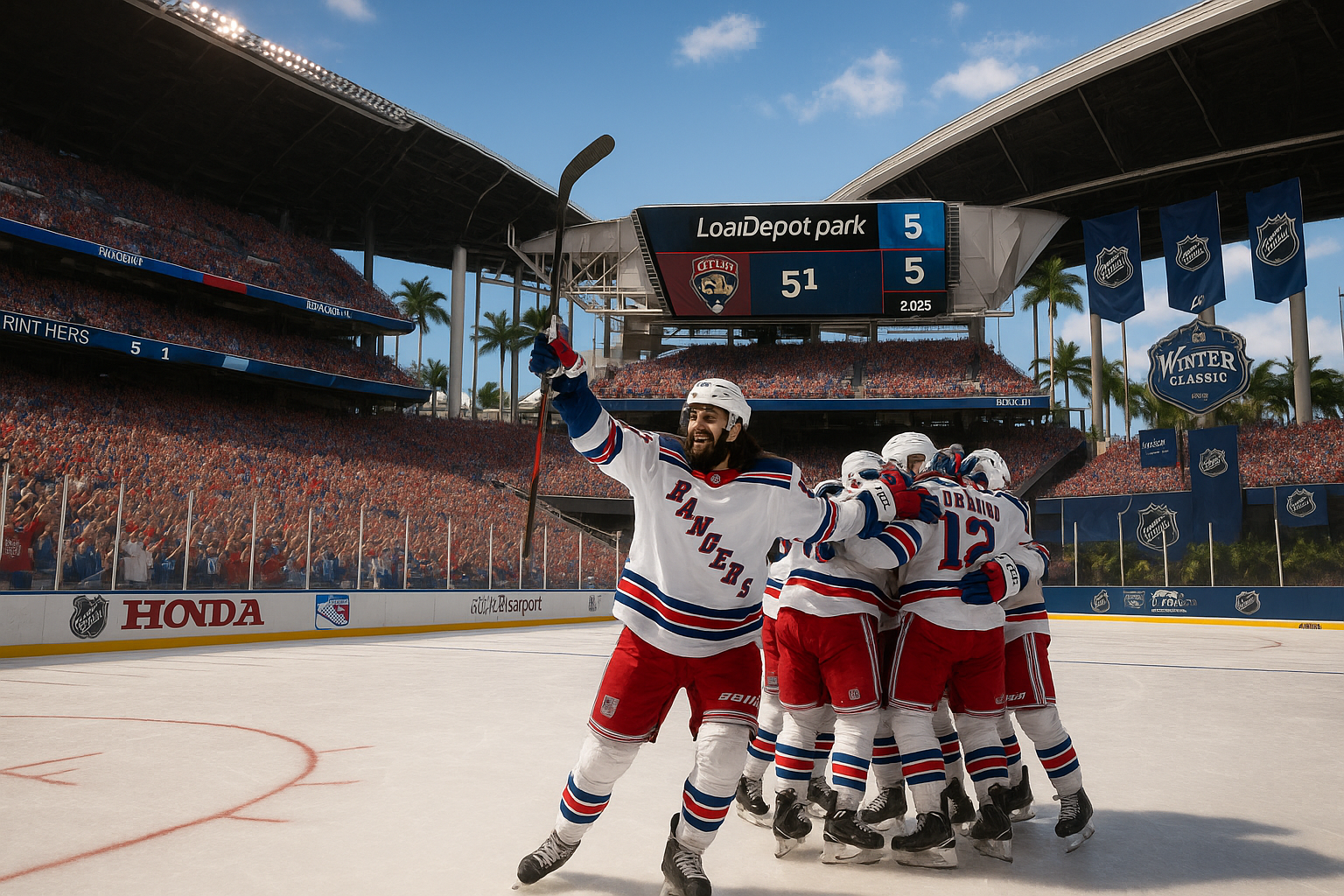 The New York Rangers secured a 5-1 victory over the Florida Panthers in the 2026 NHL Winter Classic at loanDepot Park in Miami on January 2, marking the first outdoor NHL game in the Sunshine State. Mika Zibanejad led the way with a hat trick and five points, setting records for the event. The game drew a sellout crowd of 36,153 under unseasonably warm conditions.