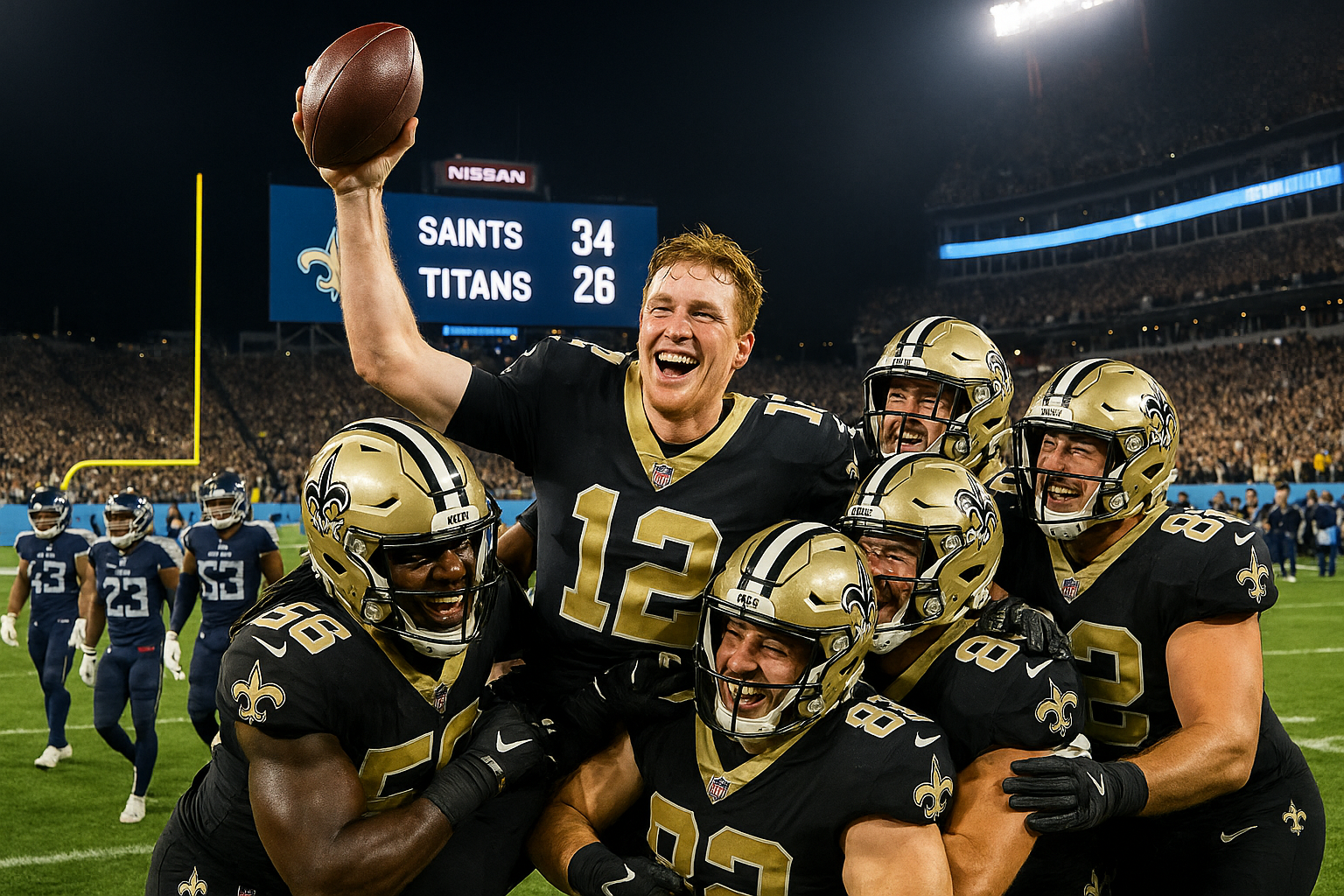 The New Orleans Saints staged a dramatic comeback to defeat the Tennessee Titans 34-26 on Sunday at Nissan Stadium, extending their winning streak to four games. Rookie quarterback Tyler Shough outshone the Titans' top draft pick Cam Ward, leading New Orleans to a 6-10 record while dropping Tennessee to 3-13. Key defensive plays and a strong second-half rushing performance sealed the victory.