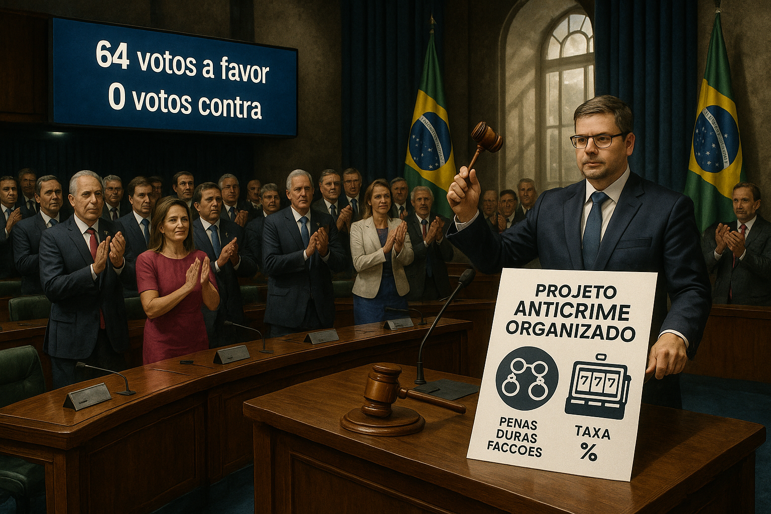 The Brazilian Senate unanimously approved the Anti-Faction Bill on Wednesday, December 10, with 64 votes in favor and none against. The bill, reported by Alessandro Vieira (MDB-SE), toughens penalties for organized crime and establishes a tax on online bets to fund efforts against factions. The proposal returns to the Chamber of Deputies for review of the changes.