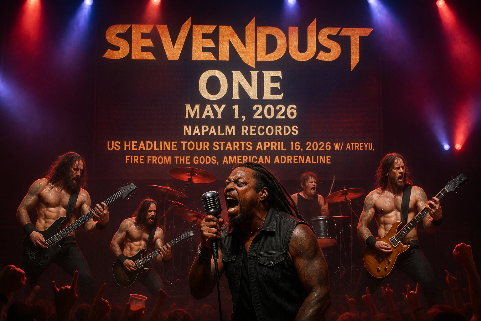 Grammy-nominated metal band Sevendust has revealed details of their 15th studio album, 'One,' set for release on May 1, 2026, via Napalm Records. The album features ten tracks blending their signature sound with emotional depth. Alongside the announcement, the band unveiled a headline US tour starting April 16, 2026, with support from Atreyu, Fire From The Gods, and American Adrenaline.