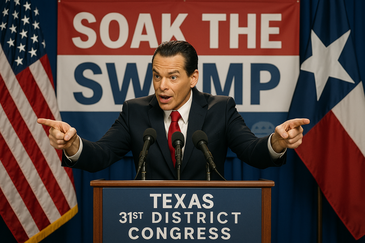 Shlomi’s campaign slogan, “Soak the Swamp,” plays on his ShamWow persona and echoes former President Donald Trump’s “drain the swamp” rhetoric. With roughly a year until primary voters in Texas’ 31st District go to the polls and the general election set for November 2026, Shlomi is positioning himself as an anti-woke outsider seeking to convert late-night infomercial fame into political clout.