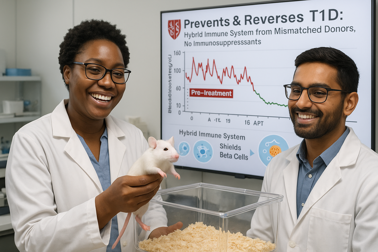 Stanford Medicine researchers have developed a combined blood stem cell and pancreatic islet cell transplant that, in mice, either prevents or cures type 1 diabetes using tissue from immunologically mismatched donors. The approach creates a hybrid immune system that halts autoimmune attacks without immunosuppressive drugs, and relies on tools already in clinical use, suggesting human trials may be feasible.