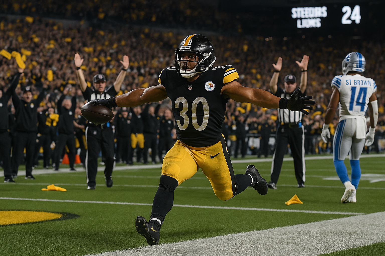 Jaylen Warren sprints for a historic 45-yard TD, powering Steelers to 29-24 win over Lions in tense thriller.
