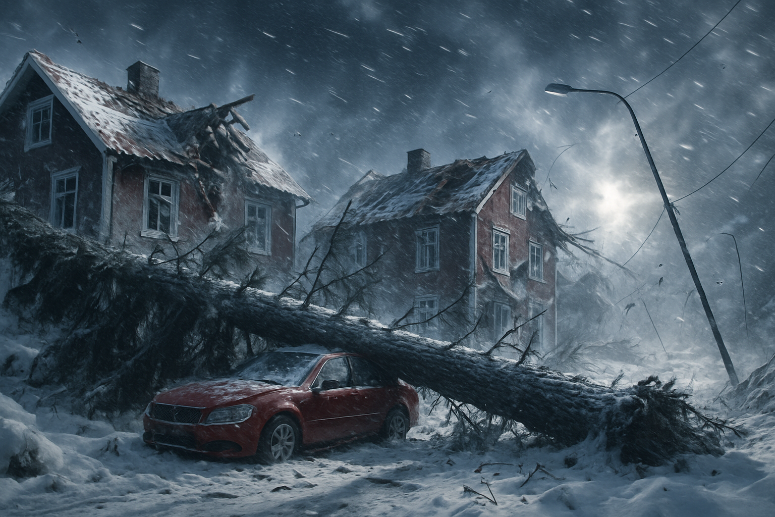 Storm Johannes ramte Sverige den 27. december 2025 med orkanstærke vinde og sne, hvilket udløste SMHI-advarsler for halvdelen af landet. To mænd døde i stormrelaterede ulykker. En mand i 60'erne, ansat i energiselskabet Hemab, blev knust til døde under et træ i Härnösand omkring kl. 16 under oprydningsarbejde. «Vi har hentet alle, der var ude, hjem igen; det er ikke sikkert at udføre feltarbejde,» siger Fredrik Olsson, leder for kunder og marked i Hemab.