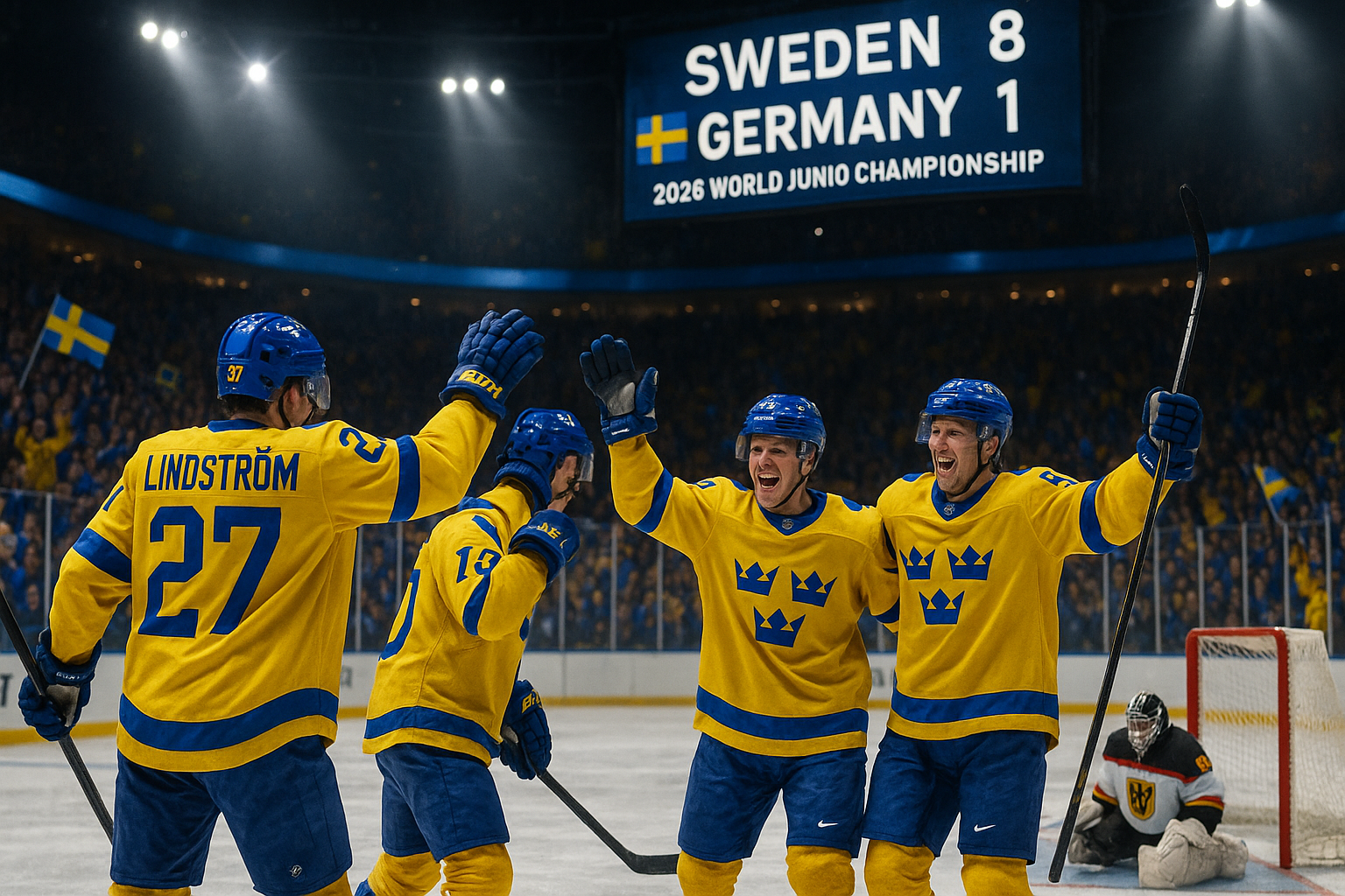 Sweden dominated Germany 8-1 in their third group stage win at the 2026 World Junior Championship on December 29 in Minnesota. The match turned decisively in Sweden's favor during the second period, where they scored four goals to lead 5-1. Captain Jack Berglund highlighted the need for continued humility ahead of their matchup against the USA.