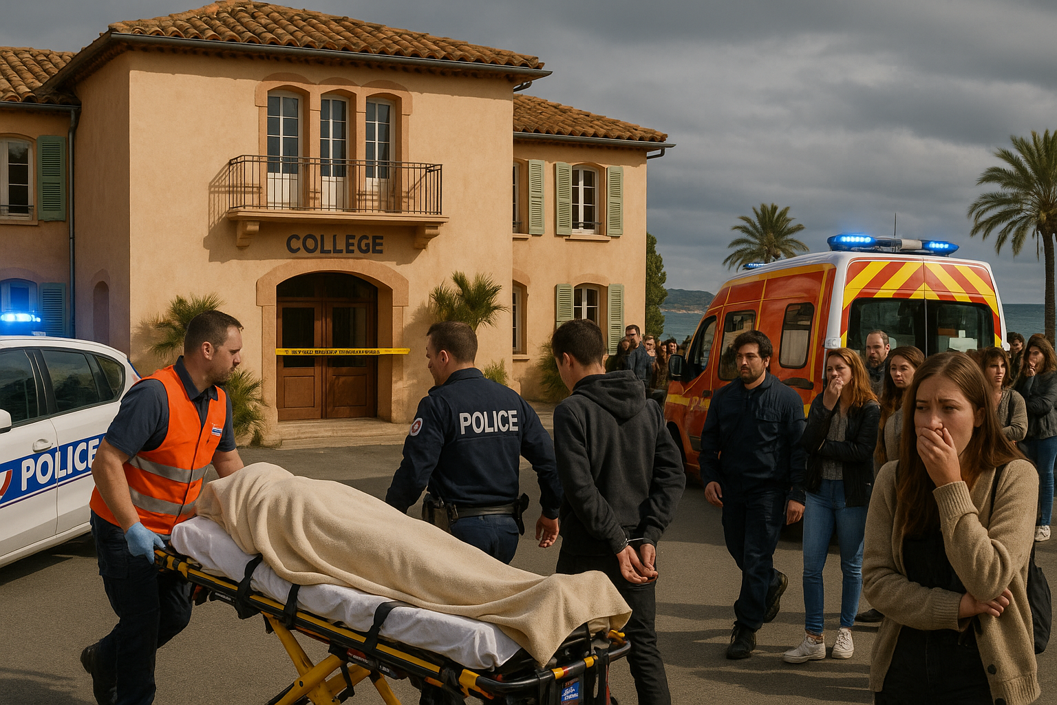 Evacuated to Toulon military hospital, the victim emerged from surgery in the evening, her life no longer in danger according to Minister Édouard Geffray, who arrived around 8:45 p.m. «I address you with great pain», the minister stated, offering thoughts to the teacher's family and praising the teams' composure. A psychological support unit will open Wednesday for students and staff; classes are suspended that day and will resume Thursday under adapted conditions.
