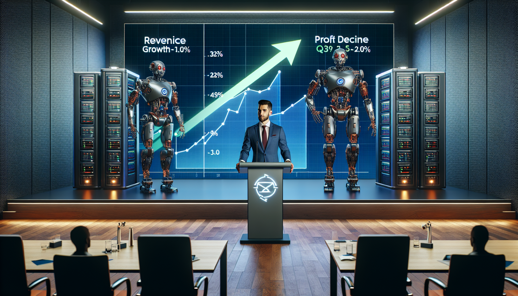 Elon Musk presenting Tesla's Q3 earnings with mixed financial results, highlighting robotaxis and robots.