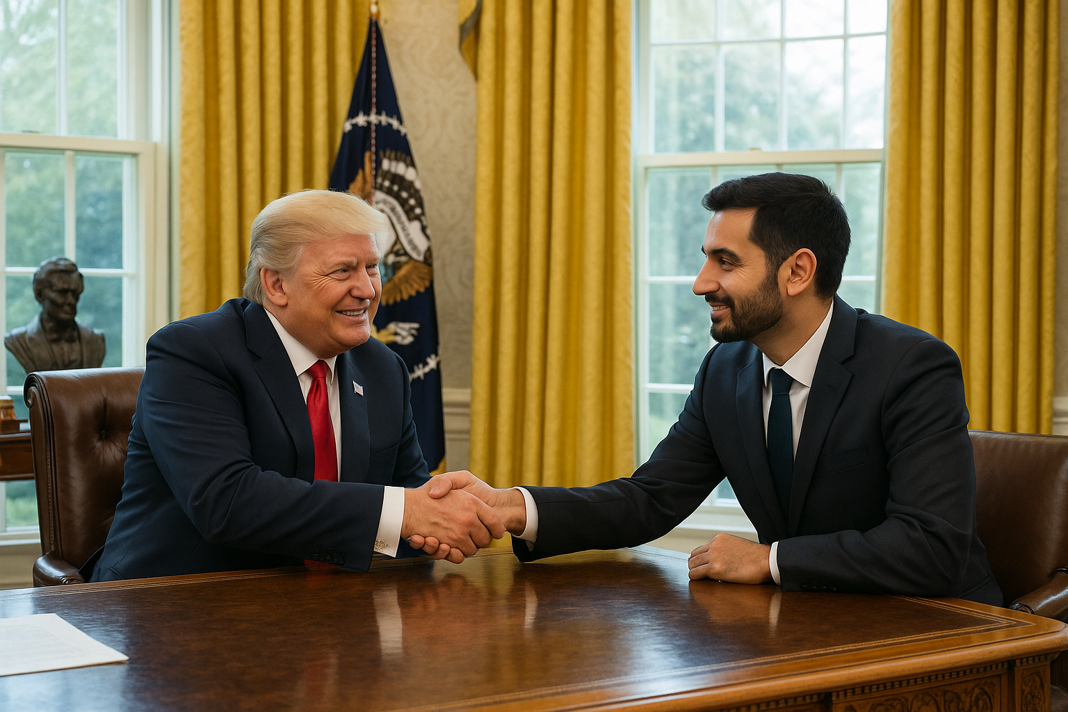 President Trump shakes hands with NYC mayor-elect Zohran Mamdani in the Oval Office, symbolizing reconciliation after a hostile campaign.