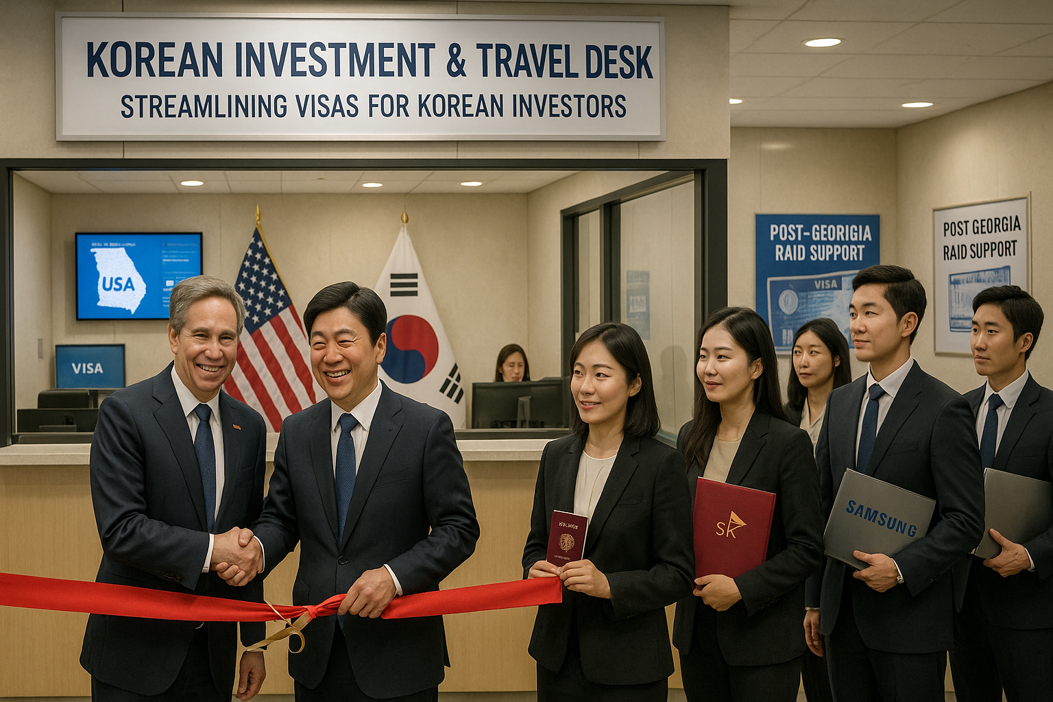 U.S. and South Korean officials launch visa support desk at Seoul embassy to aid Korean investors after Georgia raid.