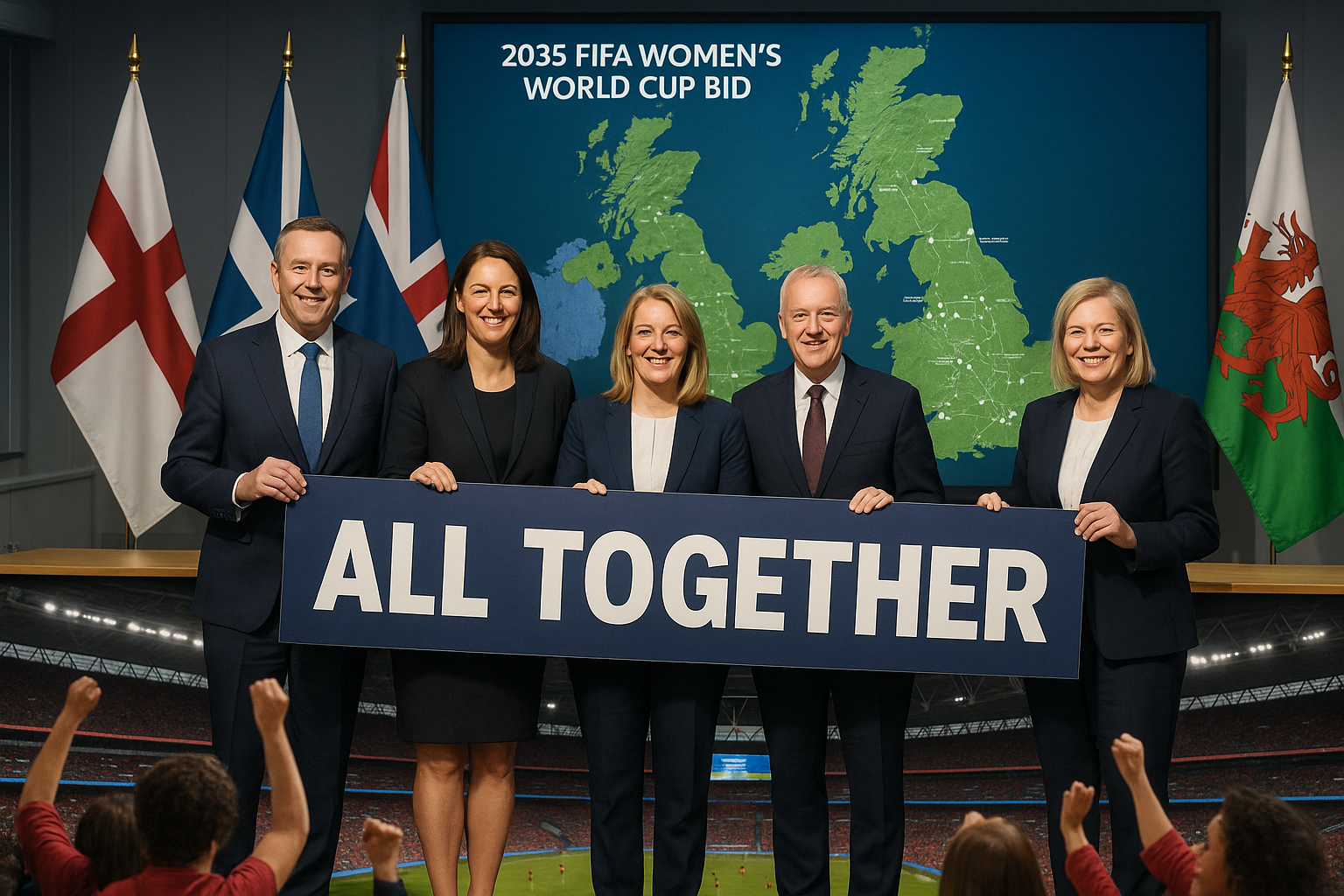 The football associations of England, Scotland, Wales and Northern Ireland have jointly submitted a bid to host the FIFA Women's World Cup in 2035 under the 'All Together' vision. The proposal includes 22 stadiums across 16 host cities, aiming to make it the most accessible tournament yet with 4.5 million tickets projected. If successful, it would be the UK's first World Cup since 1966.