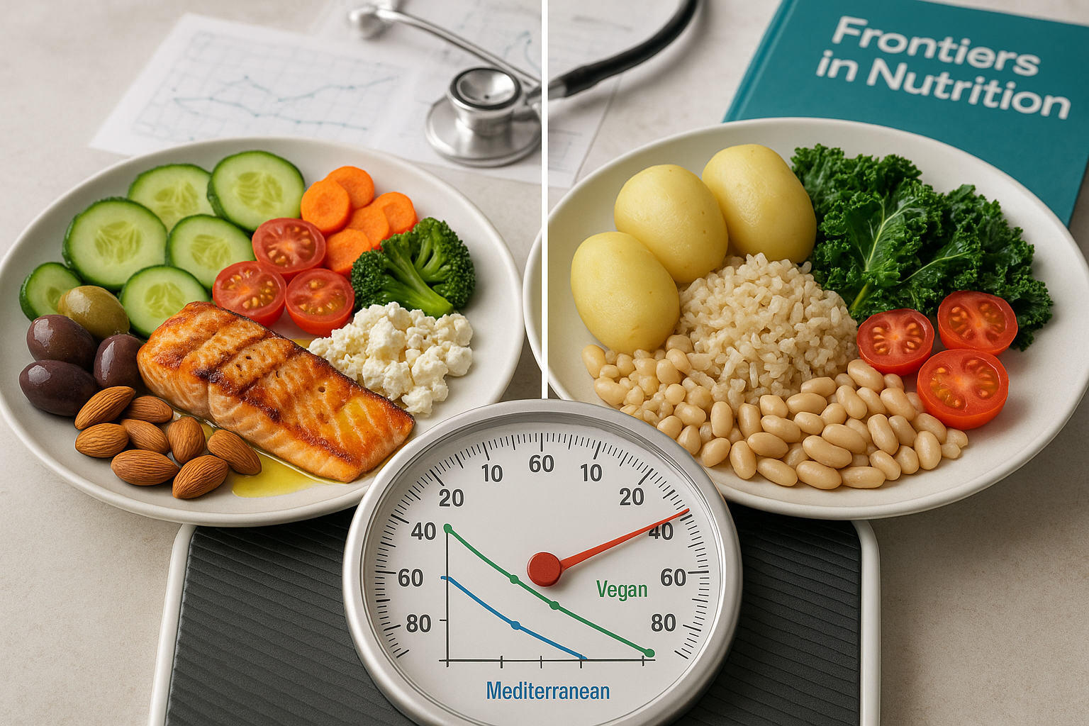The new report builds on a randomized crossover trial involving 62 overweight adults, conducted by the Physicians Committee for Responsible Medicine and colleagues. Participants followed both a low-fat vegan diet and a Mediterranean diet for 16 weeks each, in random order, separated by a four-week washout period, according to the original trial and the new analysis published in Frontiers in Nutrition.
