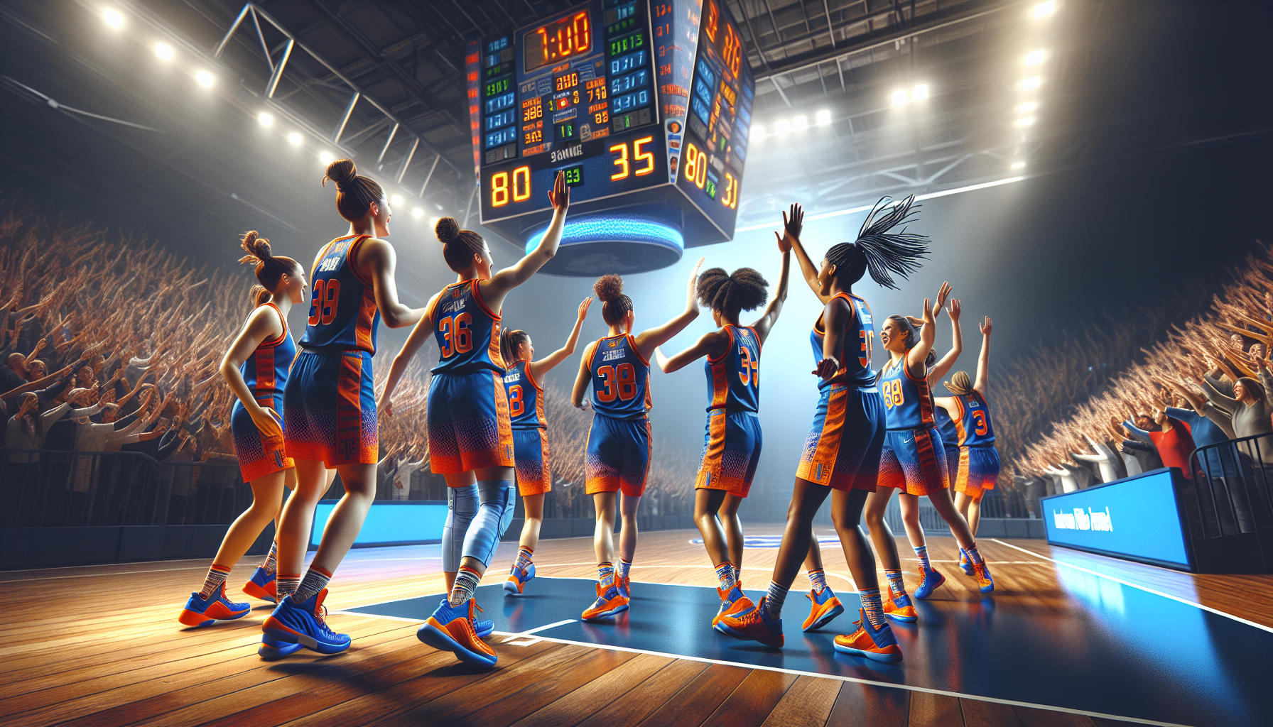 Virginia Cavaliers women's basketball team celebrating their 80-35 win over Bucknell Bison in JPJ Arena.