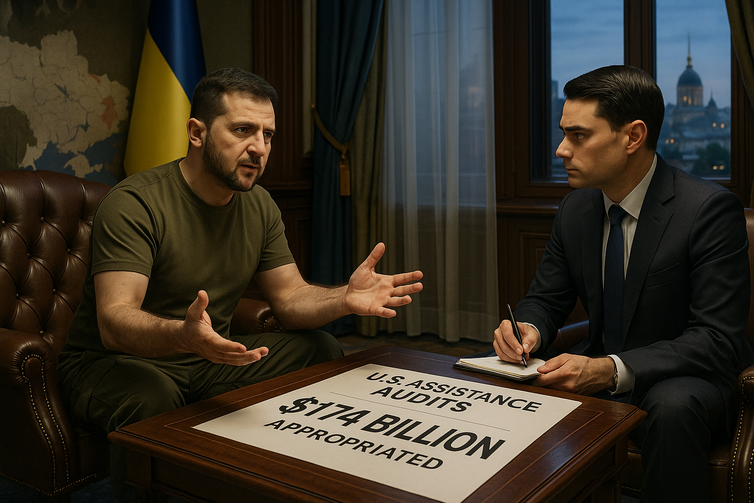 Zelensky discusses openness to U.S. aid audits with Ben Shapiro in Kyiv interview, highlighting $174 billion appropriated.