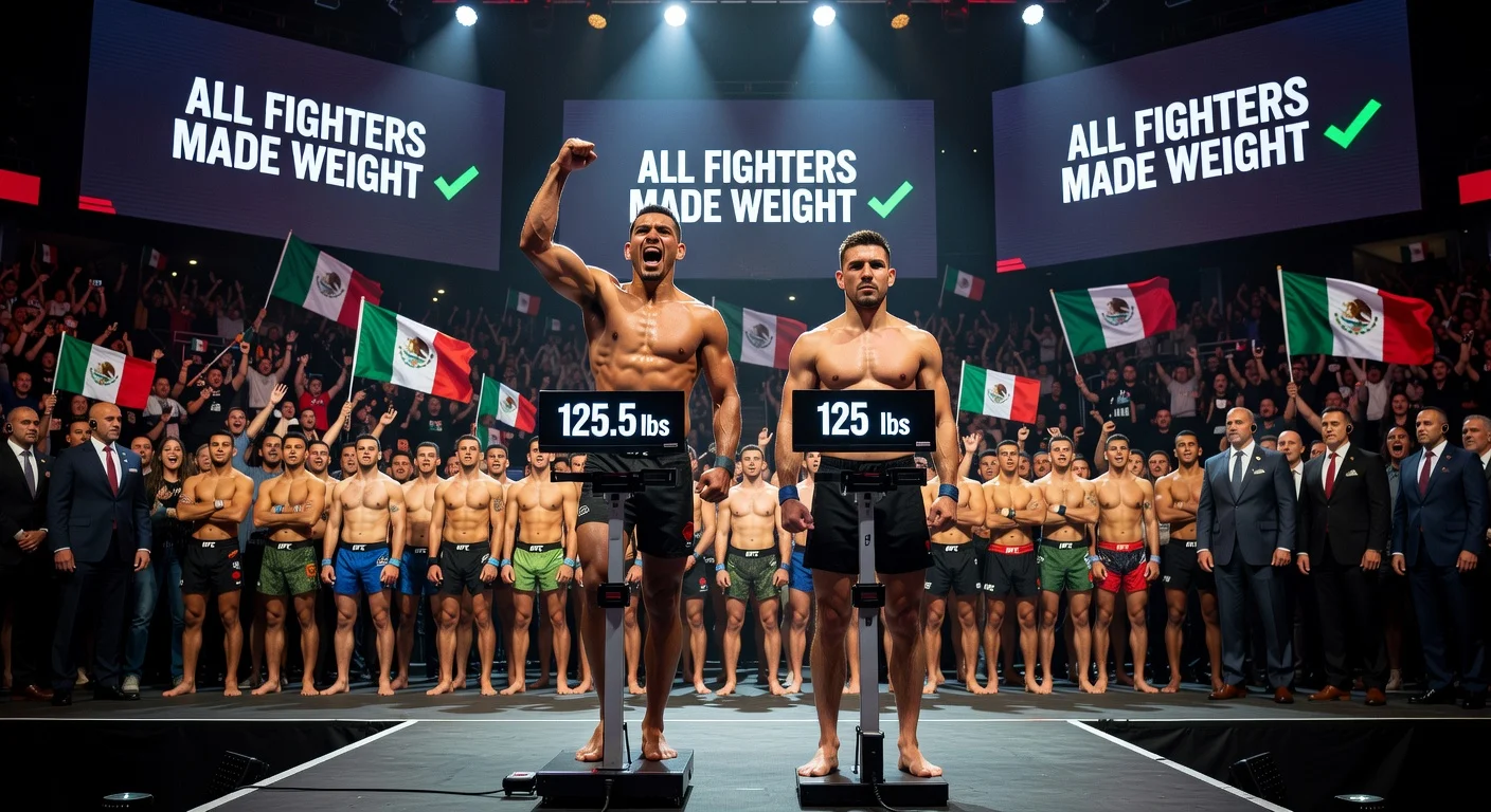 Alle 26 Kämpfer haben das Gewicht erfolgreich gemacht bei den offiziellen Wiegen für UFC Fight Night: Moreno vs. Kavanagh in Mexico City. Brandon Moreno wog 125,5 Pfund, nutzte die ein-Pfund-Nicht-Titel-Grenze, während der kurzfristige Ersatzmann Lone’er Kavanagh exakt 125 Pfund für ihr Fliegengewichts-Hauptprogramm traf. Dies ist die zweite perfekte Wiege in Folge für die UFC nach den Pannen zu Jahresbeginn 2026.