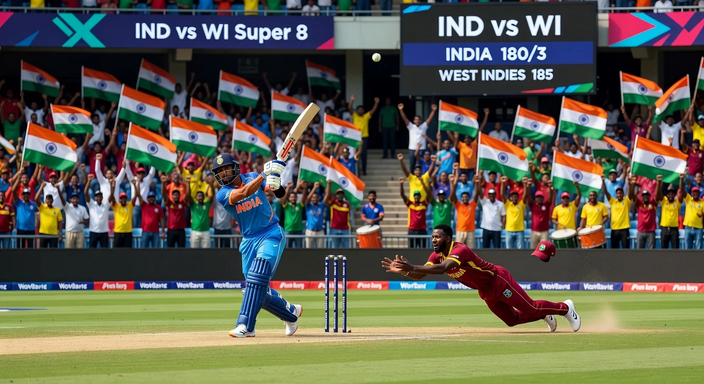 India will face West Indies in the final Super 8 match of the T20 World Cup 2026 at Eden Gardens in Kolkata on Sunday, with the winner advancing to the semifinals. This virtual knockout sees West Indies feeling at home after playing two prior fixtures there and recalling their 2016 final victory over England at the same venue. Both teams remain unbeaten in the group stage but suffered defeats against South Africa recently.