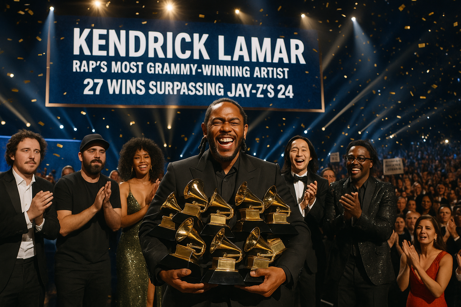 Bei den Grammy Awards 2026 sicherte sich Kendrick Lamar 27 Karriere-Siege und überholte Jay-Zs 24, um zum am meisten ausgezeichneten Rapper in der Grammy-Geschichte zu werden. Die Zeremonie hob vielfältige Erfolge hervor, einschließlich Triumphe in der elektronischen Musik und historische Meilensteine von Labels. Künstler thematisierten auch soziale Probleme wie Einwanderung inmitten der Feiern.