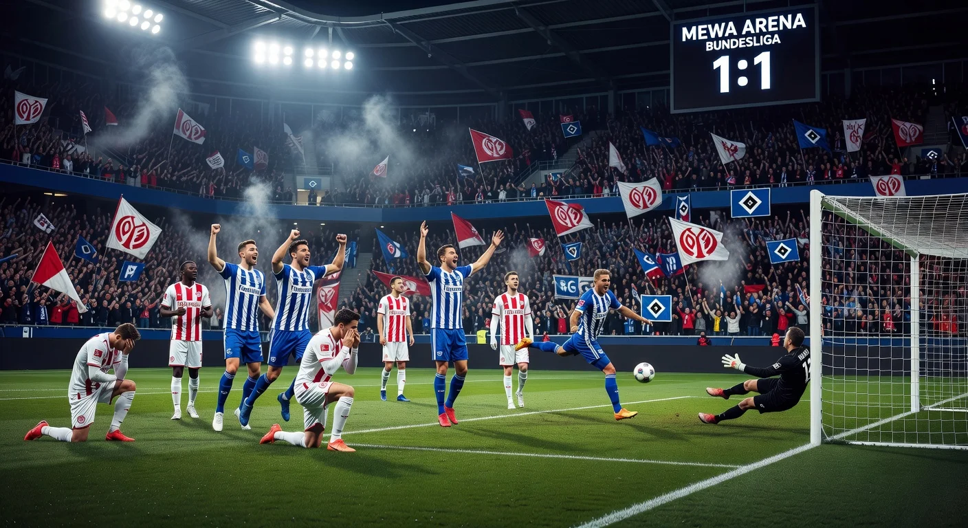 Der 1. FSV Mainz 05 und der Hamburger SV haben am Freitagabend im Rahmen des 23. Spieltags der Bundesliga mit 1:1 (1:0) getrennt. Vor 33.305 Zuschauern in der Mewa Arena verzögerte sich der Anpfiff um zehn Minuten, da der Teambus der Hamburger im Stau steckte. HSV-Trainer Merlin Polzin sagte: „Optimal ist anders. Aber wir haben maximal Bock, unsere gute Form zu beweisen.“