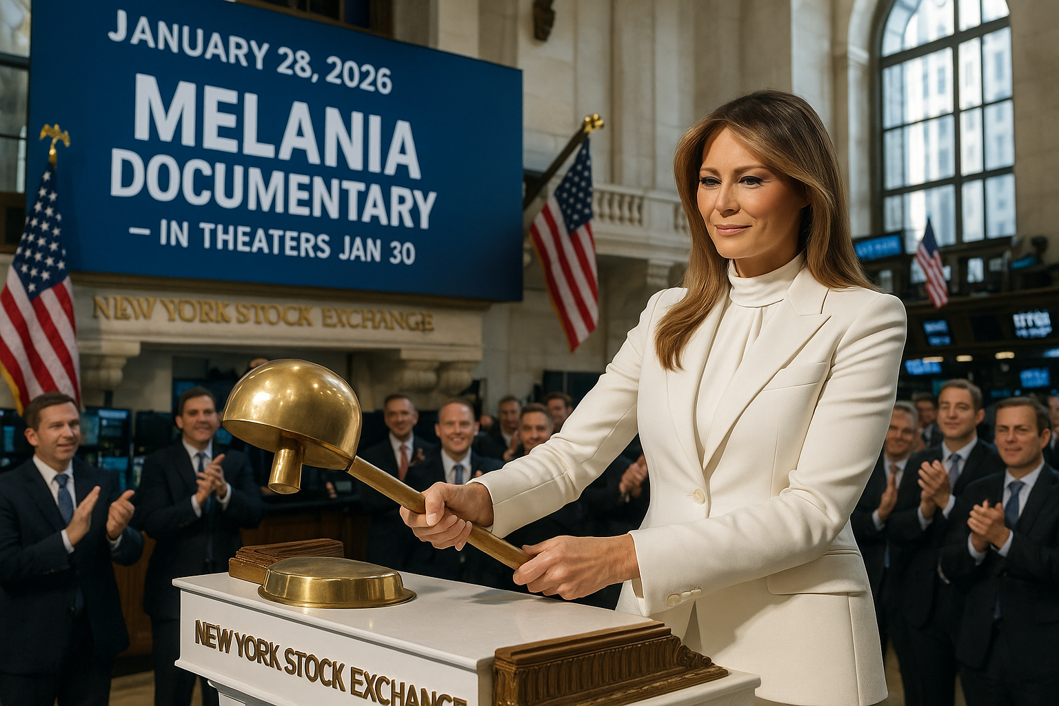 Die First Lady Melania Trump läutete am 28. Januar 2026 die Eröffnungsglocke an der New York Stock Exchange, um ihren kommenden Dokumentarfilm 'Melania' zu bewerben. Der Film, der Zugang zu den 20 Tagen vor der zweiten Amtseinführung von Präsident Donald Trump bietet, startet am 30. Januar in limitierter Kinoverleih. Die Veranstaltung hob ihr neues Produktionsunternehmen inmitten breiterer politischer Spannungen hervor.