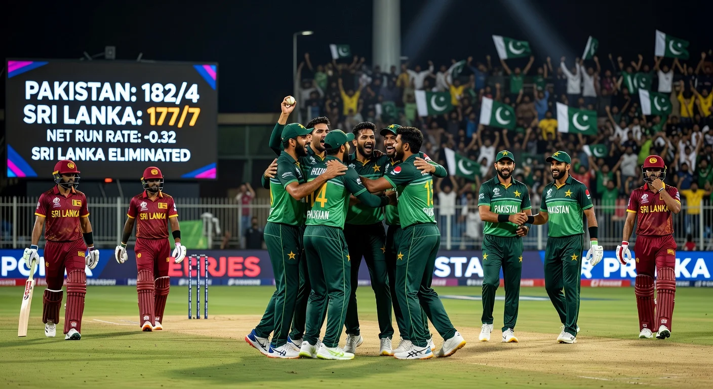 Pakistan secured a narrow five-run victory over Sri Lanka in their Super 8s match but failed to advance to the semifinals due to net run-rate calculations. Sahibzada Farhan's record-breaking century powered Pakistan to 212-8, yet Sri Lanka's spirited chase to 207-6 ensured New Zealand progressed instead. The result leaves England, New Zealand, and South Africa in the last four, with India and West Indies vying for the final spot.