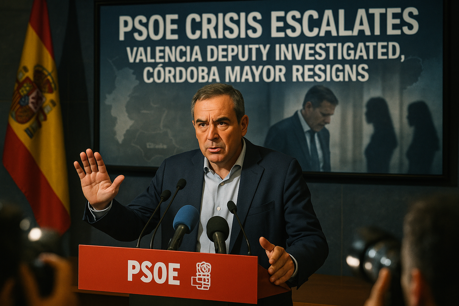 Amid ongoing PSOE sexual harassment scandals—including recent resignations like Javier Izquierdo's—the party investigates Toni González in Valencia and accepts the resignation of Belalcázar's mayor in Córdoba. González denies the claims as political revenge, while the party stresses victim support and zero tolerance.