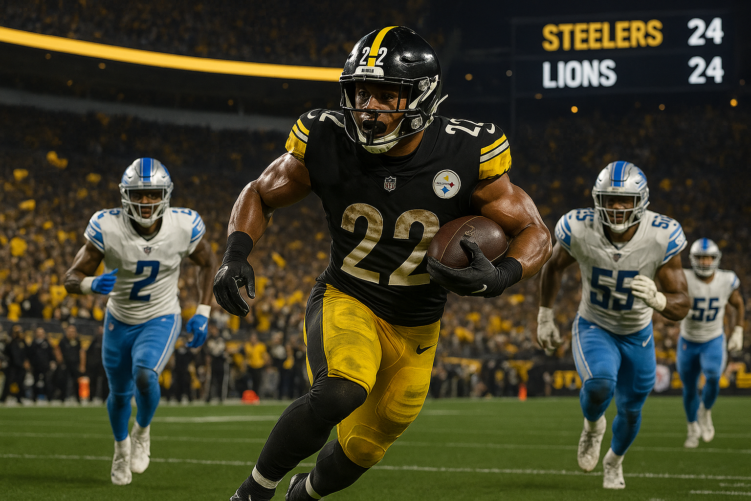 Warren’s explosive 45-Yard-Läufe im vierten Viertel dehnten den Vorsprung auf 29-17 bei 6:41 aus, beendend mit 143 Yards auf nur 14 Carries. Dies war die erste Leistung dieser Art (100+ Yards, 2 TDs auf 15 oder weniger Carries) für einen Steeler seit Franco Harris 1972. Die Defense mit herausragenden Leistungen von Derrick Harmon und Cameron Heyward zermalmte Detroits Laufspiel und hielt Jahmyr Gibbs sowie David Montgomery auf 15 Yards in 12 Carries beschränkt —wodurch Analyst Conor Orr Harmons „huge“ Impact gegen Elite-Rusher lobte.