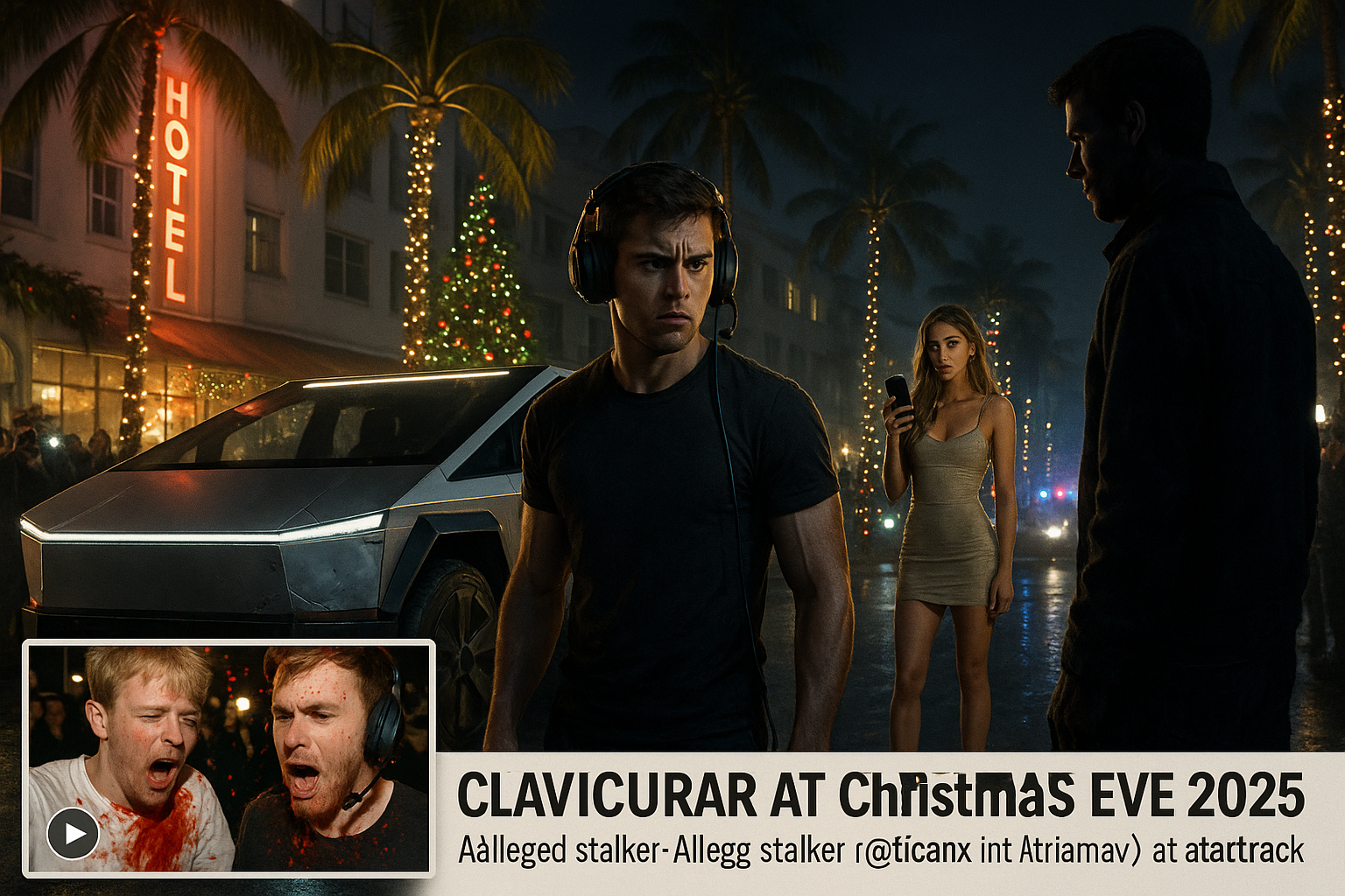 Streamer Clavicular's Christmas Eve 2025 Cybertruck incident in Miami—where he ran over an alleged stalker during a Kick livestream, leading to his channel ban—has escalated. A new clip ties the stalker to Instagram influencer @riicanx, while viral footage shows Clavicular and fellow streamer N3on attacked with red liquid, fueling renewed backlash.