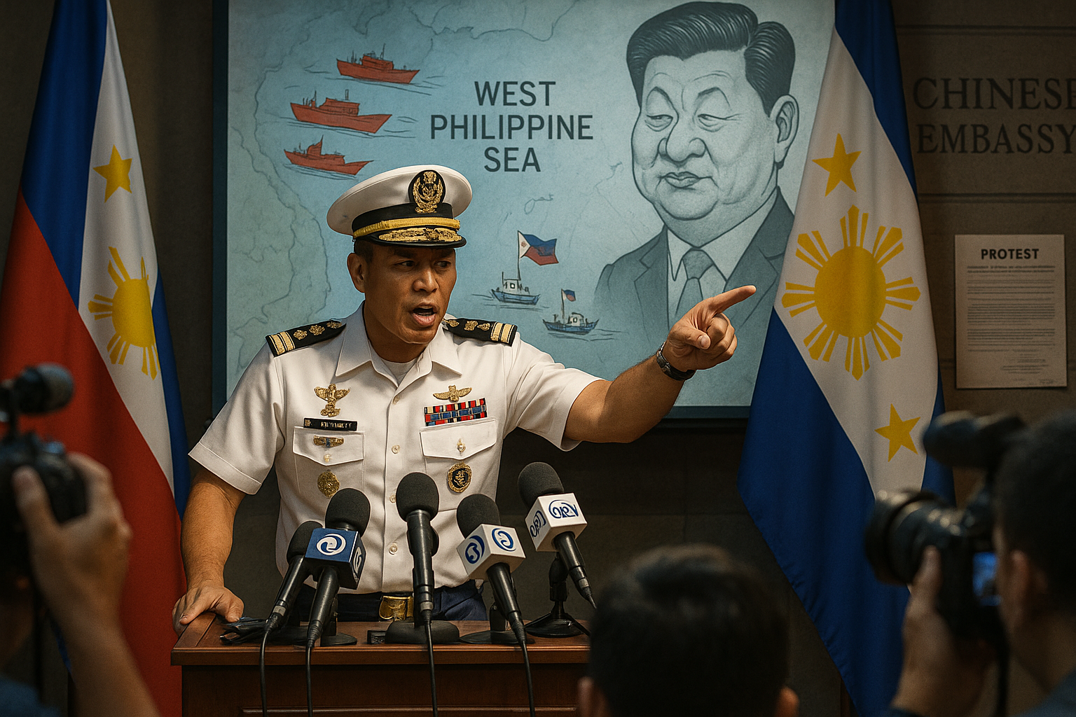 Commodore Jay Tarriela of the Philippine Coast Guard fires back at China's diplomatic protest during a tense press conference on West Philippine Sea disputes.