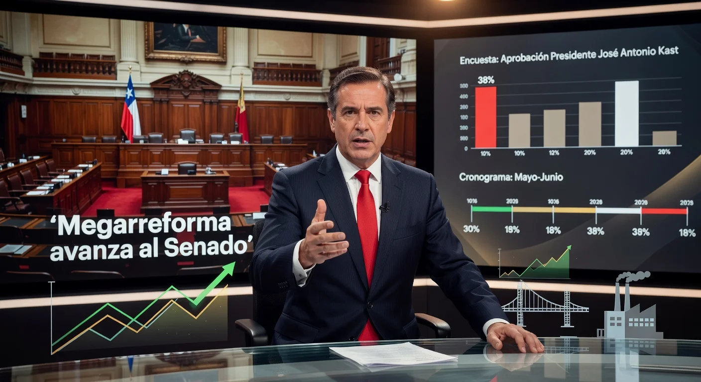 Chamber President Jorge Alessandri (UDI) estimated that the National Reconstruction and Economic Development bill could reach the Chamber floor in May and the Senate in June. In an interview on Canal 13's Mesa Central, he criticized the opposition for labeling the initiative as benefiting the 'super rich' and called for broad agreements to revive the economy. A Criteria poll showed 38% approval for President José Antonio Kast and divided opinions on the project.