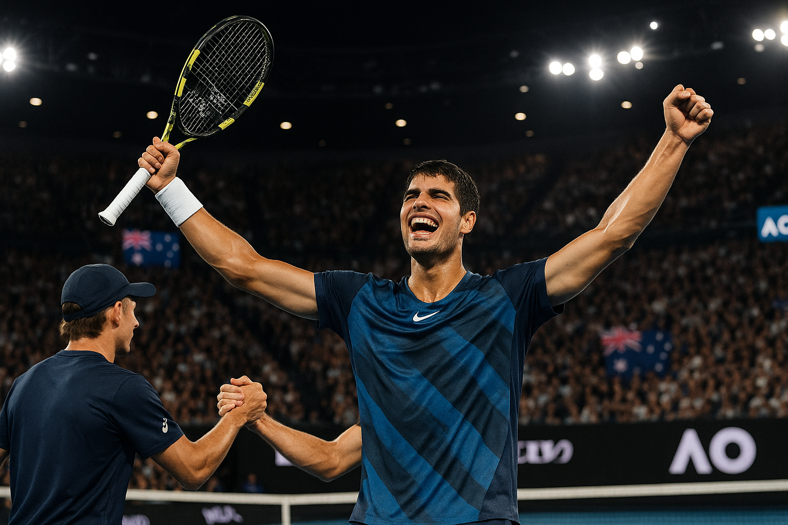 In a match played at Rod Laver Arena in Melbourne, Carlos Alcaraz demonstrated patience and power to defeat Alex de Minaur in straight sets during the quarterfinals of the 2026 Australian Open. The Spaniard, seeded No. 1, started strongly by breaking early to lead 3-0 in the first set, but de Minaur fought back with his speed and defense, breaking twice to level the score. Tension peaked at 5-6 when de Minaur received a time violation warning before serving. Alcaraz showed sportsmanship by approaching the umpire, stating, "I wasn’t ready. I wasn’t there," which led to the warning being withdrawn. However, the incident disrupted de Minaur's rhythm, and he lost the set 7-5 after Alcaraz converted his fourth set point on a net cord winner.