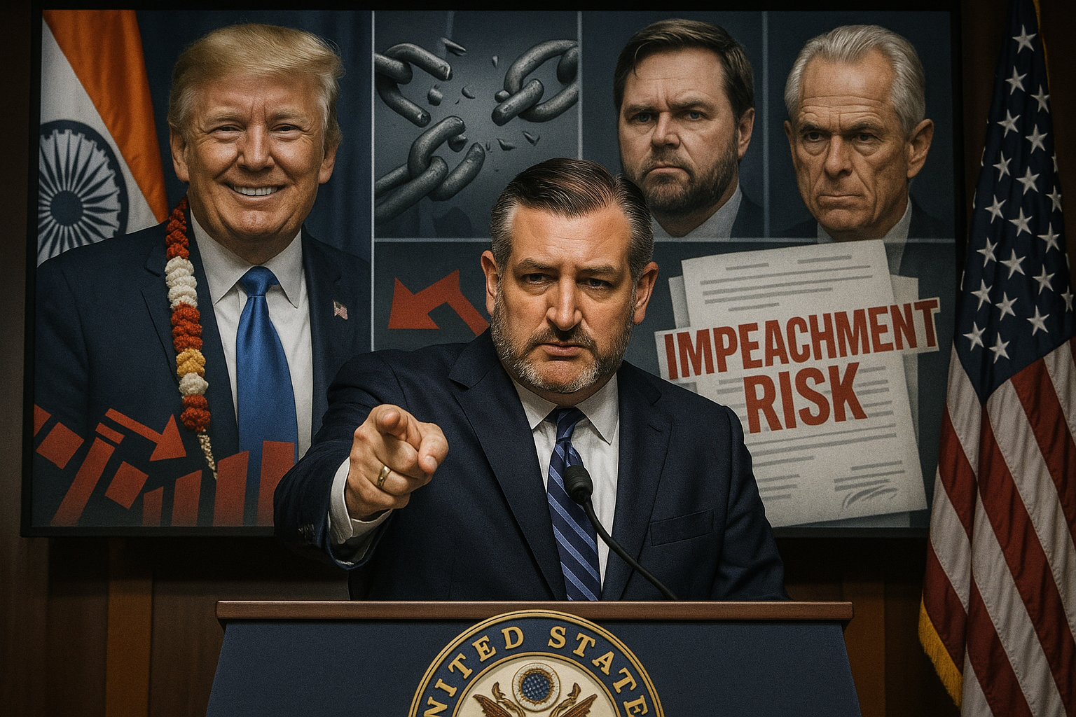 US Senator Ted Cruz has accused President Donald Trump, Vice President JD Vance, and trade advisor Peter Navarro of obstructing a potential trade deal with India. The criticism comes despite Trump's warm message on India's Republic Day. Cruz warns that Trump's tariffs could lead to impeachment proceedings.