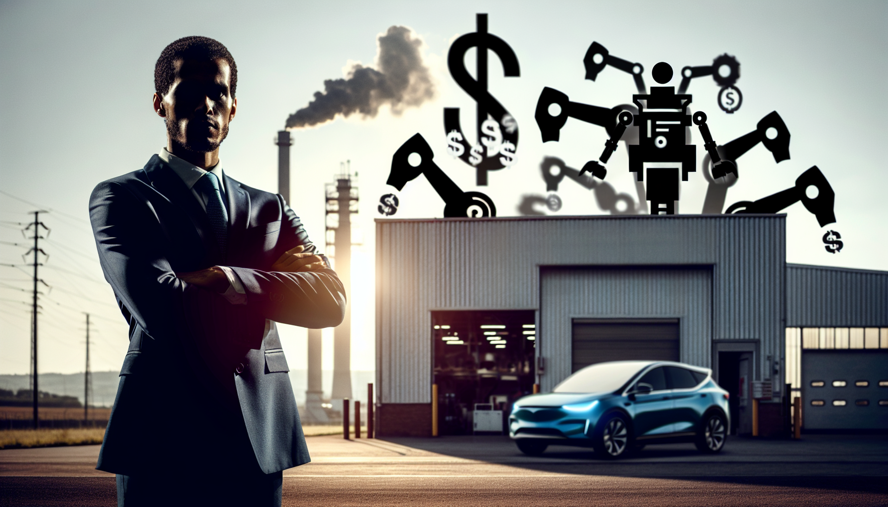 Elon Musk threatening to quit Tesla over a disputed $1 trillion compensation package, illustrated in a realistic corporate setting.