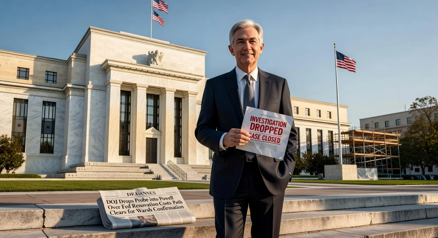 The U.S. Department of Justice has dropped its criminal investigation into Federal Reserve Chair Jerome Powell over cost overruns at the central bank's headquarters renovation. The move, announced by U.S. Attorney Jeanine Pirro on Friday, shifts scrutiny to the Fed's inspector general and clears a path for Senate confirmation of President Trump's nominee Kevin Warsh. The probe had been criticized as an effort to pressure Powell amid disputes over interest rates.