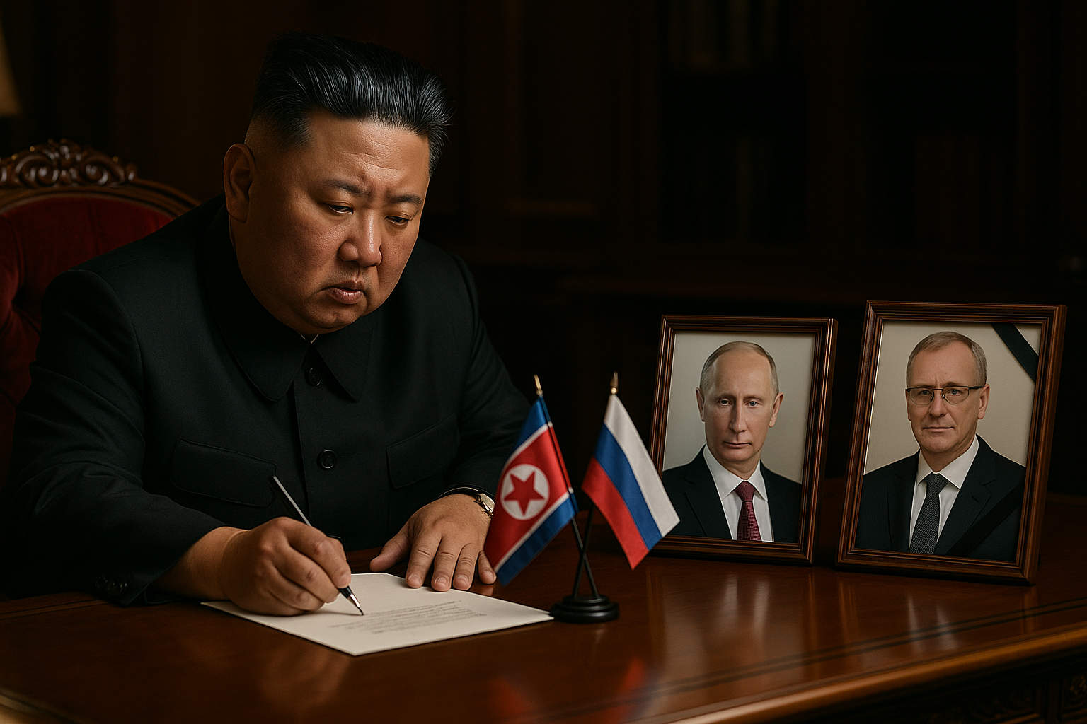 Kim Jong-un writing condolences to Putin over the death of Russian ambassador to North Korea, Aleksandr Matsegora.