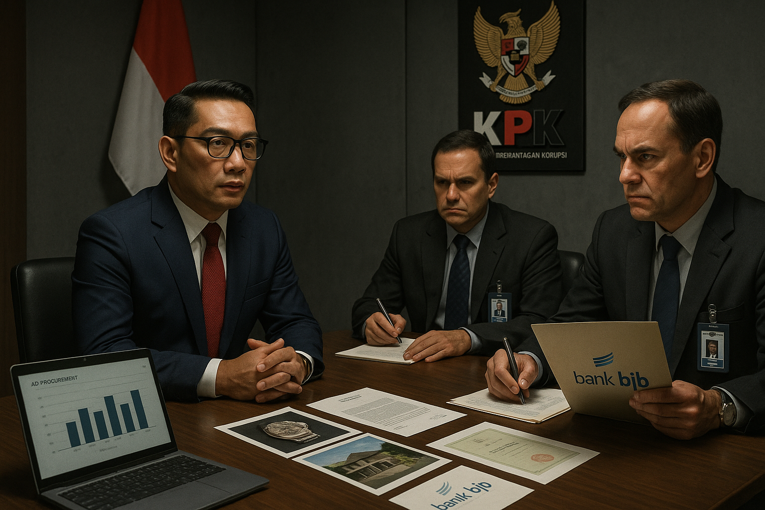 Indonesia's Corruption Eradication Commission (KPK) examined former West Java Governor Ridwan Kamil as a witness in the alleged corruption of advertisement procurement at Bank BJB from 2021 to 2023. Ridwan Kamil claimed seized assets were bought with personal funds, while KPK stated investigators have other evidence and may re-examine him.