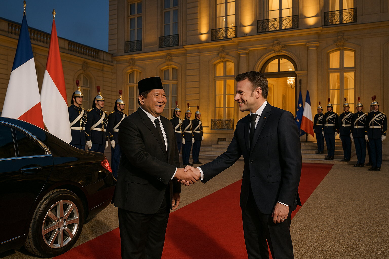 Indonesian President Prabowo Subianto arrived at the Élysée Palace in Paris on January 23, 2026, to attend a private dinner hosted by French President Emmanuel Macron. The meeting follows Prabowo's visit to the World Economic Forum in Davos, Switzerland, aiming to bolster the strategic partnership between the two nations. The welcome ceremony was formal, featuring an honor guard.