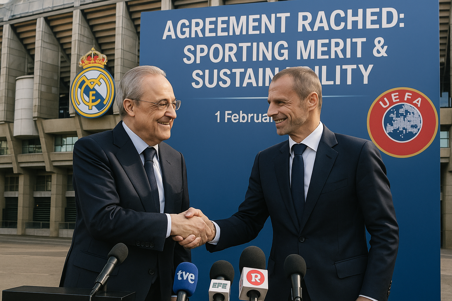 On February 11, 2026, Real Madrid, UEFA, and the European Football Clubs (EFC) association issued a joint statement announcing an agreement "for the well-being of European club football." The pact respects the principle of sporting merit, focuses on long-term club sustainability, and aims to enhance the fan experience through technology. It also resolves legal disputes related to the European Super League once implemented.