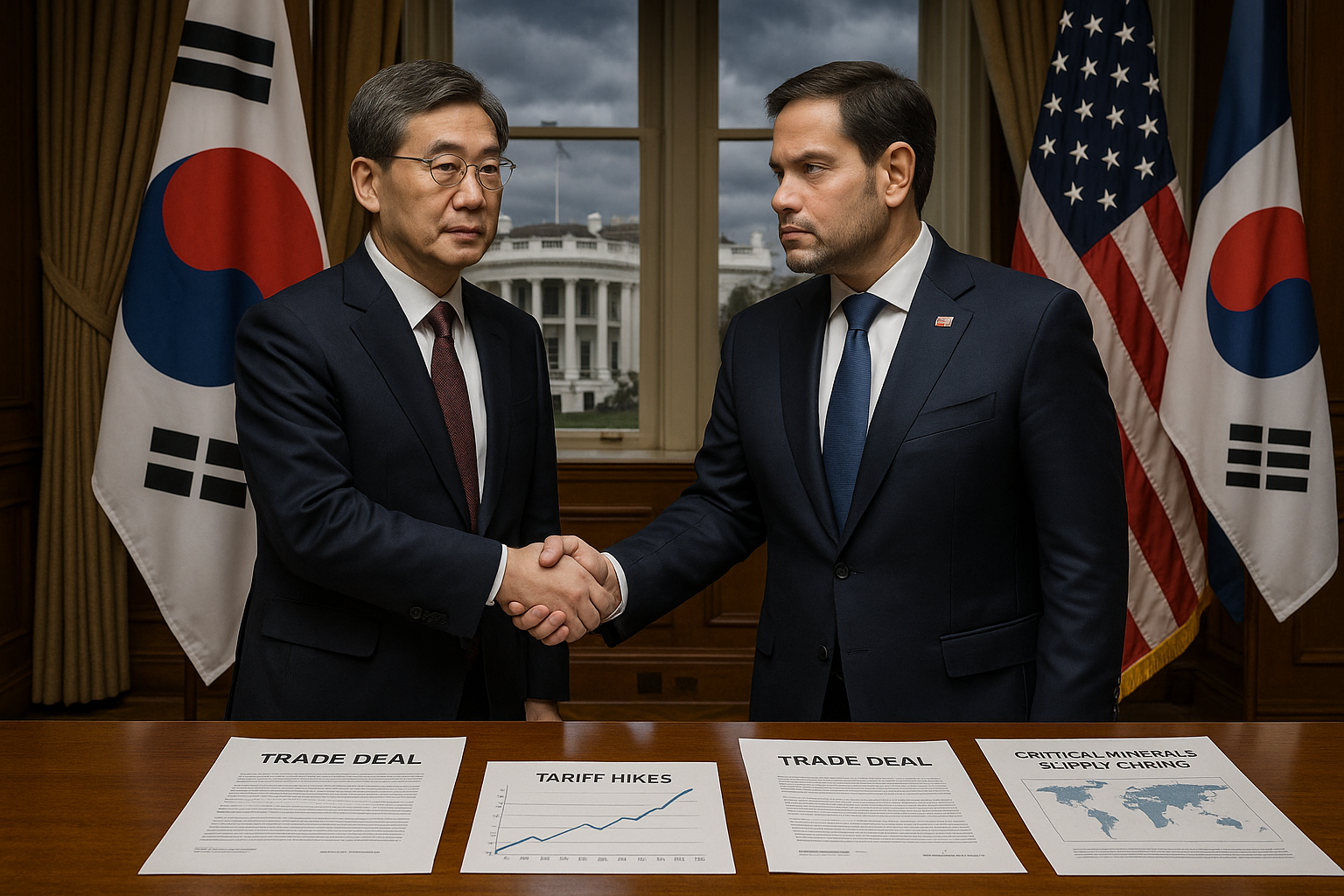 South Korean and U.S. top diplomats Cho Hyun and Marco Rubio meet in Washington amid trade tariff tensions.