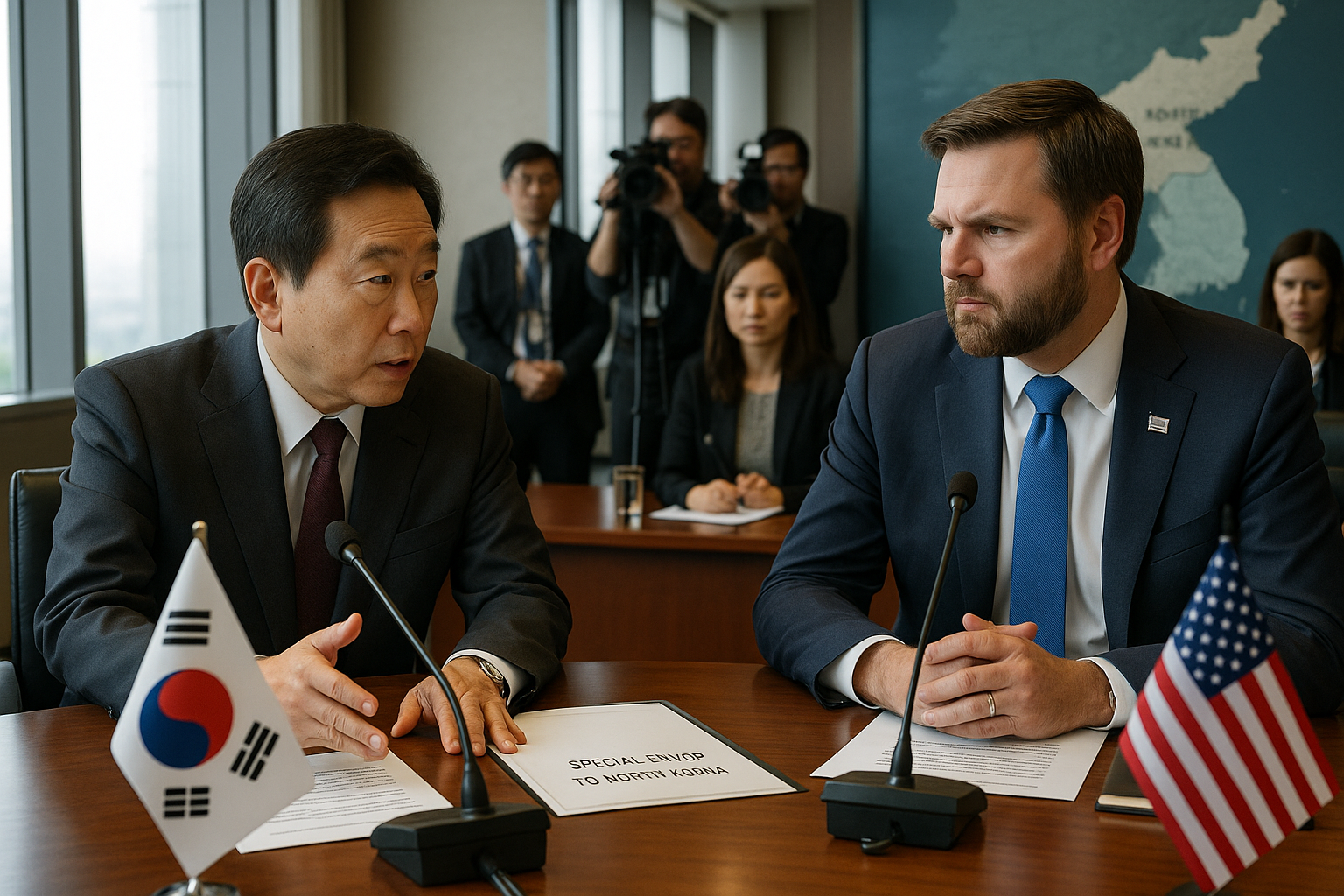 South Korean Prime Minister Kim Min-seok proposed on Friday that the United States send a special envoy to North Korea to improve relations between Washington and Pyongyang during talks with U.S. Vice President JD Vance. The meeting also addressed South Korea's probe into a massive customer data leak at Coupang, with both sides agreeing to manage the issue to avoid misunderstandings. This marks Kim's first overseas trip since becoming prime minister.