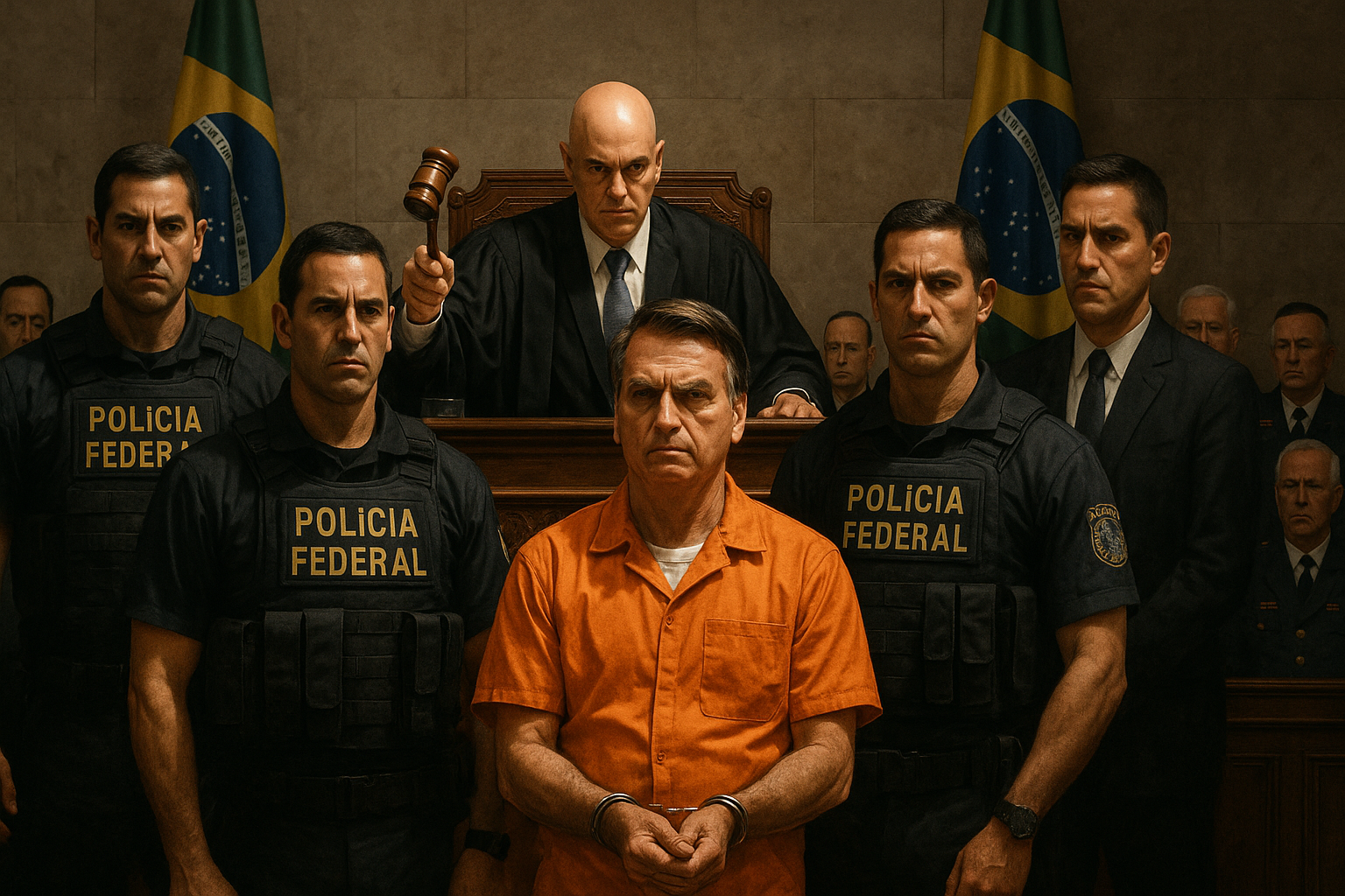 Moraes declared the final judgment of the criminal case against the central nucleus of the 2022 post-election coup attempt, ordering immediate serving of sentences. For Jair Messias Bolsonaro (PL), sentenced to 27 years and 3 months for crimes including armed criminal organization, attempt to abolish the Democratic Rule of Law, coup d'état, qualified damage, serious threat, and deterioration of heritage, the former president will remain imprisoned at the Federal Police Superintendency in the Federal District, where he has been held preventively since November 22 for violating an electronic ankle monitor.