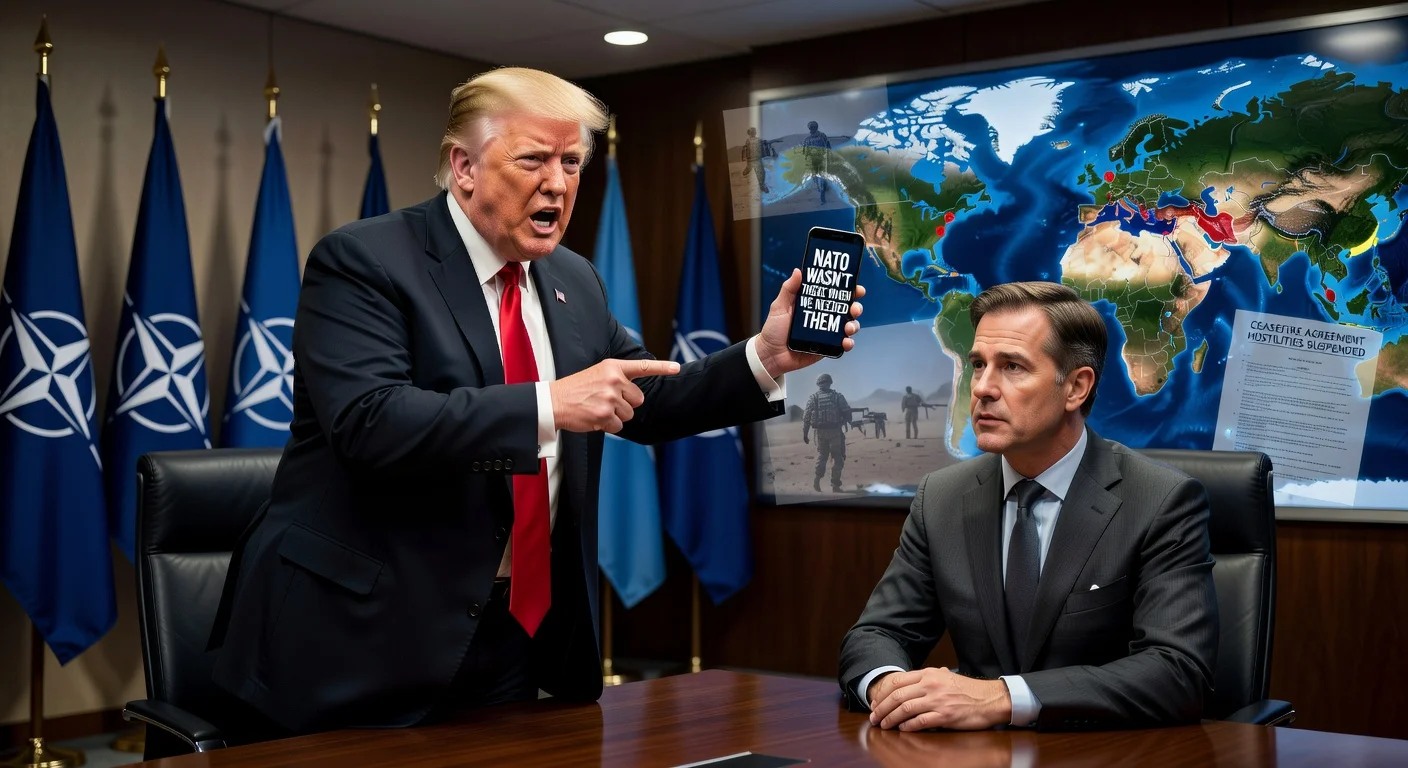 President Donald Trump on Wednesday and Thursday escalated his attacks on NATO allies via social media, claiming the alliance was absent during the recent US strikes against Iran that preceded this week's fragile ceasefire. He wrote, 'NATO WASN’T THERE WHEN WE NEEDED THEM,' referenced past tensions like the Greenland dispute, and accused partners of needing 'pressure placed upon them' to act. Trump threatened to pull US troops from countries refusing to back operations, such as sending warplanes to bomb Iran, and reiterated that NATO is a 'paper tiger.' These comments came during his meeting with NATO Secretary-General Mark Rutte, building on prior frustrations expressed in March over allies' reluctance to secure the oil-choked Strait of Hormuz.