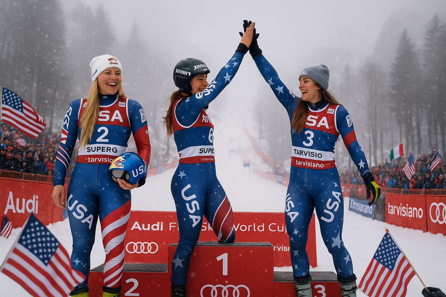 The FIS Alpine Ski World Cup's penultimate stop in Tarvisio marked the close of the Olympic qualification window for the 2026 Winter Olympics. Over the weekend, the U.S. women's alpine team competed fiercely, with Lindsey Vonn, at age 41, extending her dominant season by finishing third in the downhill—her fifth podium—and second in the super-G, her seventh podium in eight speed races. "It was tough conditions with the visibility but I'm really happy to be on the podium again," Vonn said. "Of course, I'm close to another win, but it is what it is. I think I'll save the hundredths for Cortina."