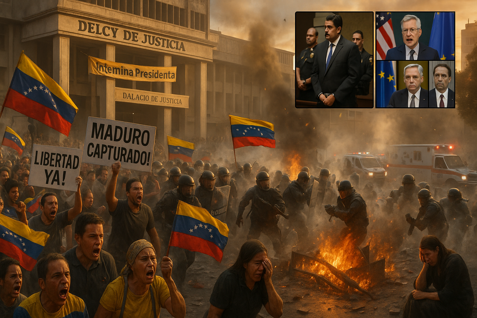 Following the U.S. capture of Venezuelan President Nicolás Maduro and Cilia Flores on January 3, 2026, in Caracas, Venezuela's Supreme Court appointed Vice President Delcy Rodríguez as interim leader. Maduro faces narcoterrorism charges in New York on January 5, as protests erupt, at least 40 deaths are reported, and international backlash grows.