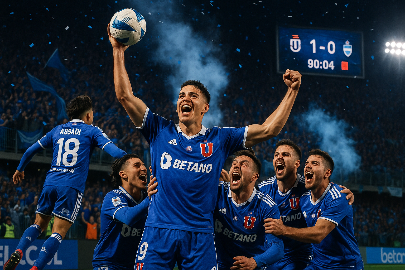 Universidad de Chile celebrates 1-0 win over O’Higgins at Estadio El Teniente, Rancagua.